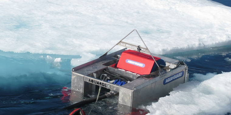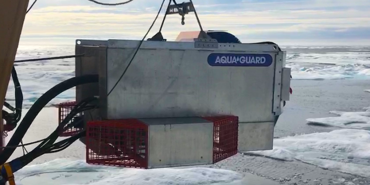 After the successful operations in heavy oil ponds the U.S. Coast Guard contracted Aqua-Guard to build a ROTOX system for testing in the high Arctic. See the results of these tests here ROTOX.