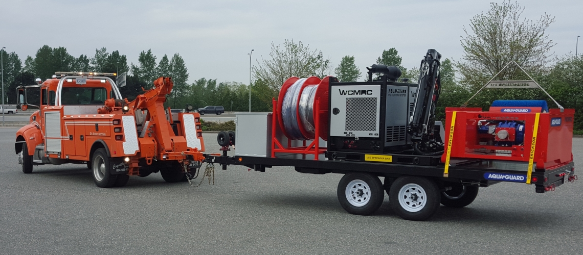 The power pack/crane system can be removed from the trailer and used to deploy/recover the skimmer head in areas where trailer access is not possible.